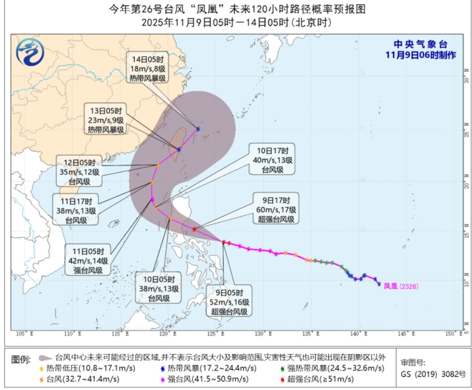 根据中央气象台消息,预计“凤凰”将继续向西偏北方向移动,强度还将有所增强,甚至可能达到17级。它将于9日夜间在菲律宾吕宋岛东部沿海登陆,穿过吕宋岛后强度明显减弱;随后将于10日中午前后移入南海东部海面,强度略有增强;待到11日,开始逐渐转向北偏东方向移动,趋向台湾岛西南部沿海,强度迅速减弱。