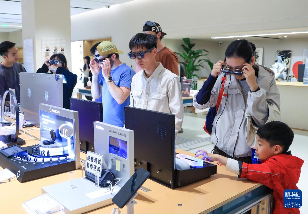 1月18日,顾客在深圳市南山区的INNO100全球创新旗舰店体验智能眼镜。新华社记者 毛思倩 摄